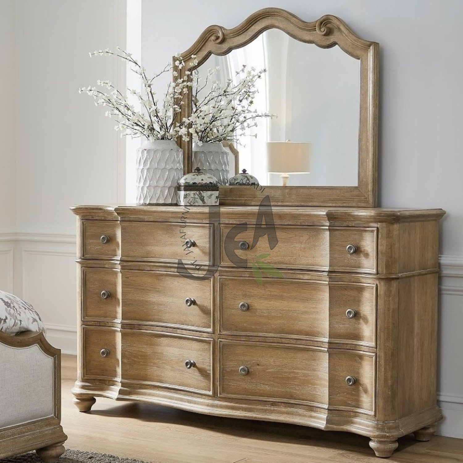 Hanz Dresser, sebuah meja rias jati pilihan yang akan melengkapi set kamar tidur Anda dengan sentuhan elegan nan fungsional. Desain klasik dresser kayu jati ini memancarkan keindahan abadi, ideal untuk menciptakan suasana ruangan pribadi yang nyaman dan berkelas.