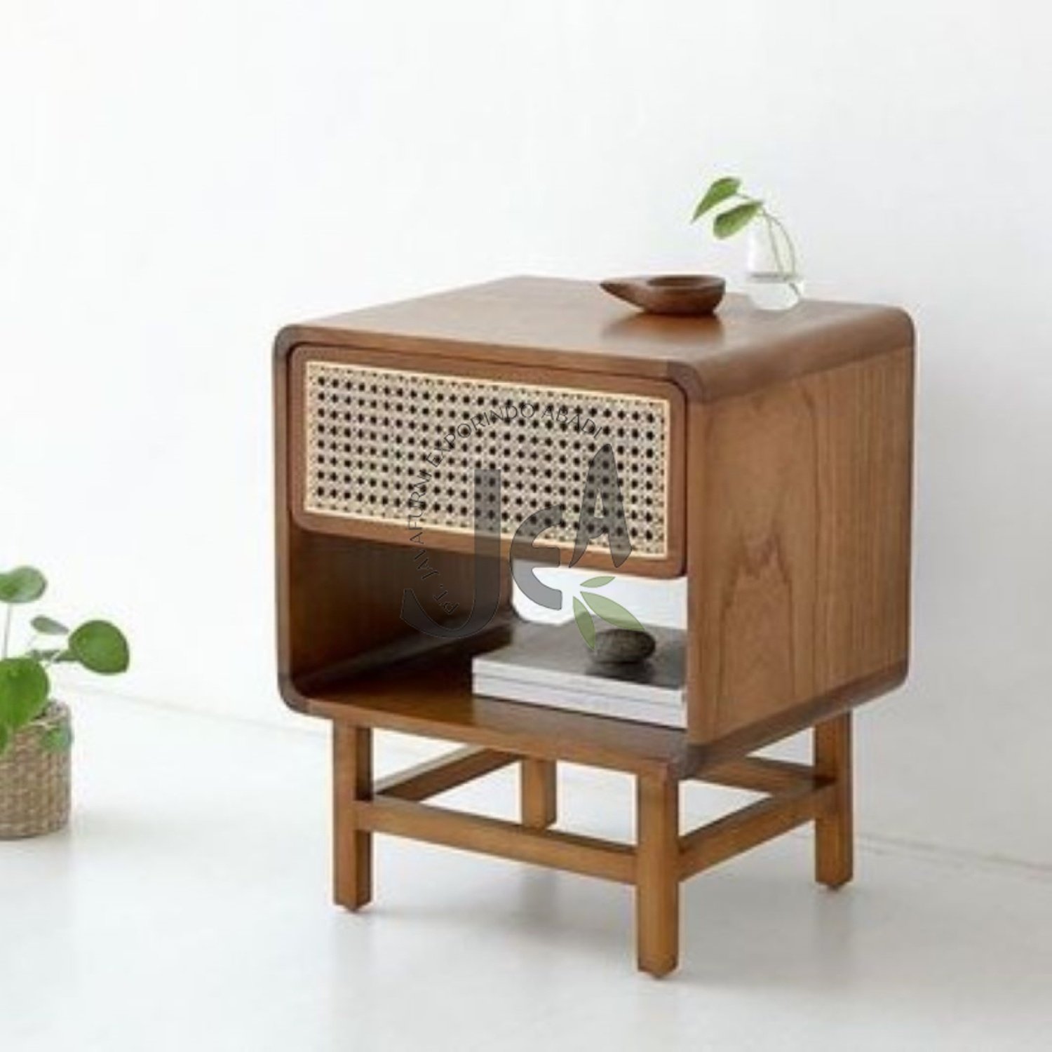 Setiap Ignacio Bed Side hadir dengan detail dekoratif rotan yang ditenun halus pada bagian laci, memberikan tekstur menarik dan nuansa hangat pada ruangan. Finishing natural teak semakin menonjolkan keindahan serat kayu jati, menciptakan tampilan yang menawan dan selaras dengan berbagai gaya interior.