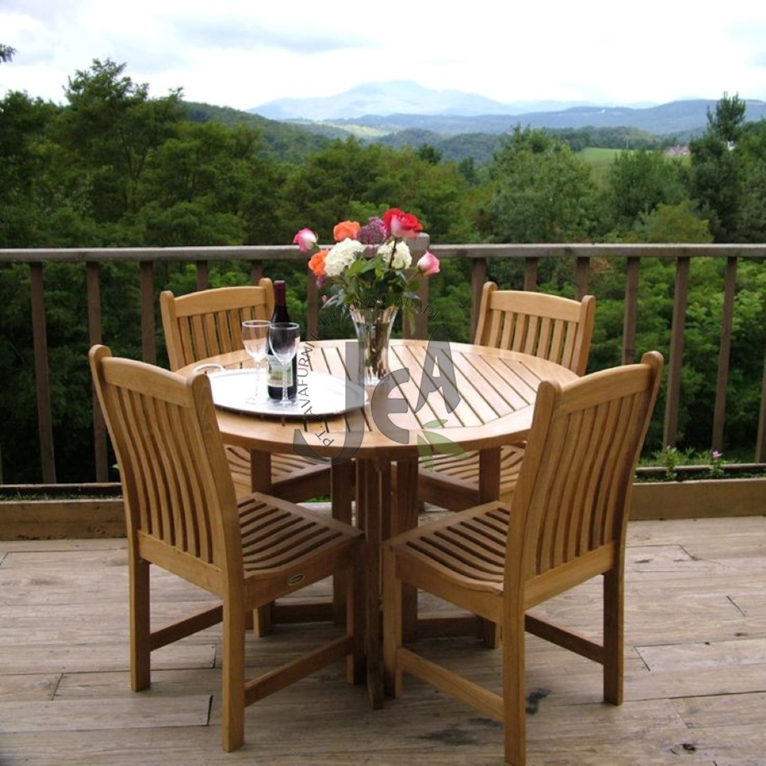 Set meja makan ini dirancang untuk empat tempat duduk, ideal untuk momen kumpul keluarga kecil atau menjamu sahabat dekat. Kualitas konstruksinya menjamin stabilitas dan kenyamanan saat digunakan, menjadikan setiap hidangan terasa lebih istimewa. Ciptakan kenangan berharga di ruang makan luar ruangan Anda.